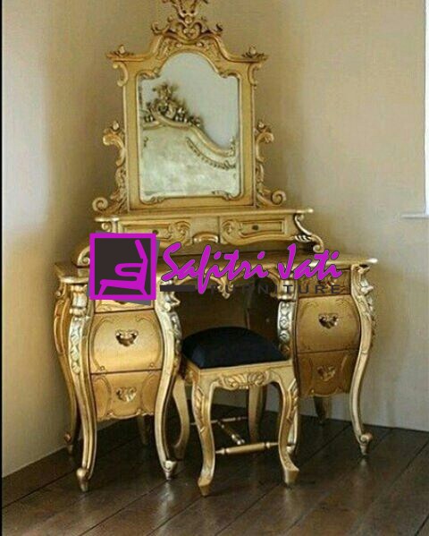 Meja Rias Raja dengan desain terbaru modern sangat cocok buat anda yang suka dengan finishing dengan warna emas, terbuat dari kayu mahoni dengan proses open sehingga menghasilkan bahn baku yang layak dan baik ketika masuk di proses finishing. Ayo jangan malu-malu silahkan pesan segera Meja… Meja Rias Raja