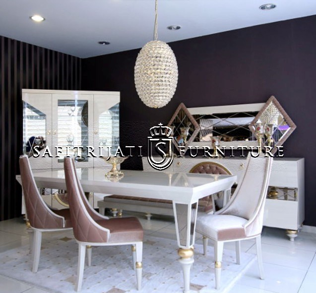 Meja makan minimalis mewah terbaru adalah salah satu produk meja makan yang mempunyai model minimalis dan mewah. Sangat pas dan cocok untuk di tempatkan di ruangan anda dengan model minimalis. Meja makan minimalis mewah terbaru adalah produk unggulan di perusahaan kami yang saat ini sedang nge hits di pasarannya. Meja makan minimalis mewah terbaru ini mempunyai letak keunggualan pada perbedaan model sandaran yang agak melengkung sehingga menjadikan lebih cantik dan nyaman saat di gunakan.