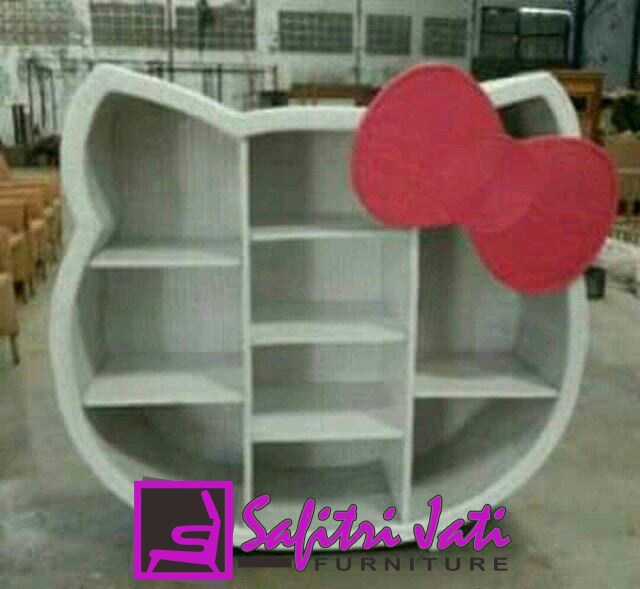 Rak Buku Hello Kitty desain terbaru minimalis elegan berbentuk karakter hello kitty pas buat anak-anak anda. Rak Buku Hello Kitty ini di buat oleh pengrajin berpengalam di bidangnya asli oleh tangan-tangan seni jepara. Dilengkapi dengan hiasan kepala cermin di bagian atas sehingga menjadikan nampak lebih mewah.
