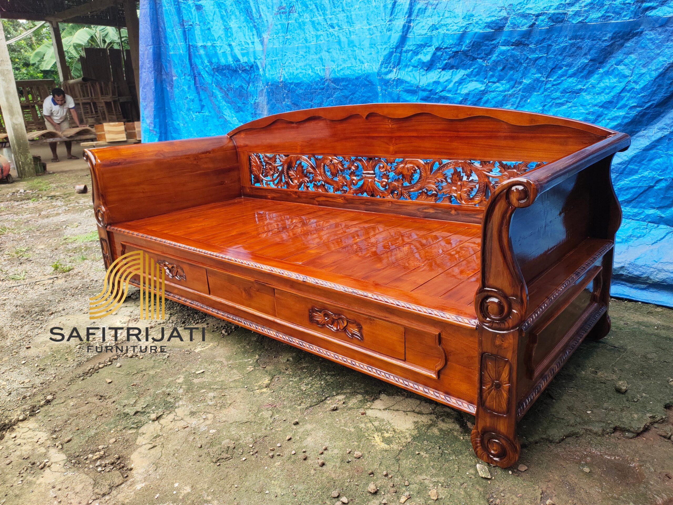 Bale Bale Bagong Ukir ukuran 2m x 80cm Sangat tepat untuk menjadi pelengkap furniture jati dirumah anda. Dimana produk Bale Bale ini berfungsi sebagai sarana untuk bersantai sambil minum secangkir kopi atau teh. Entah anda sedang membaca koran, majalah, hingga santai bersama keluarga. Tentu saja… Bale Bale Bagong Ukir ukuran 2m x 80cm
