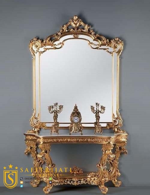 Meja Konsul Klasik Mewah Gold Leaf Meja konsul Mewah Klasik Gold Leaf ini siap membuat rumah anda semakin cantik dan mempesona, gaya meja konsul minimalis yang saat ini menjadi incaran para pecinta mebel mebel jepara khususnya kategori meja konsul dan cermin minimalis. Meja konsul… Meja Konsul Mewah Klasik Gold Leaf
