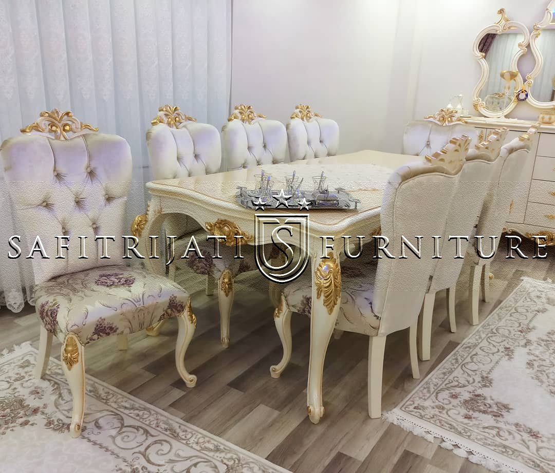 Meja Makan Mewah Marmer Meja makan mewah marmer jepara dengan model terbaru desain minimalios dan elegan akan siap mendekorasi ruang makan anda terasa lebih mewah dan nyaman. Meja makan mewah marmer ini dengan formasi 8 kursi makan 1 buah meja dengan meja ukuran 200cm X 1000cm,… Meja Makan Mewah Marmer